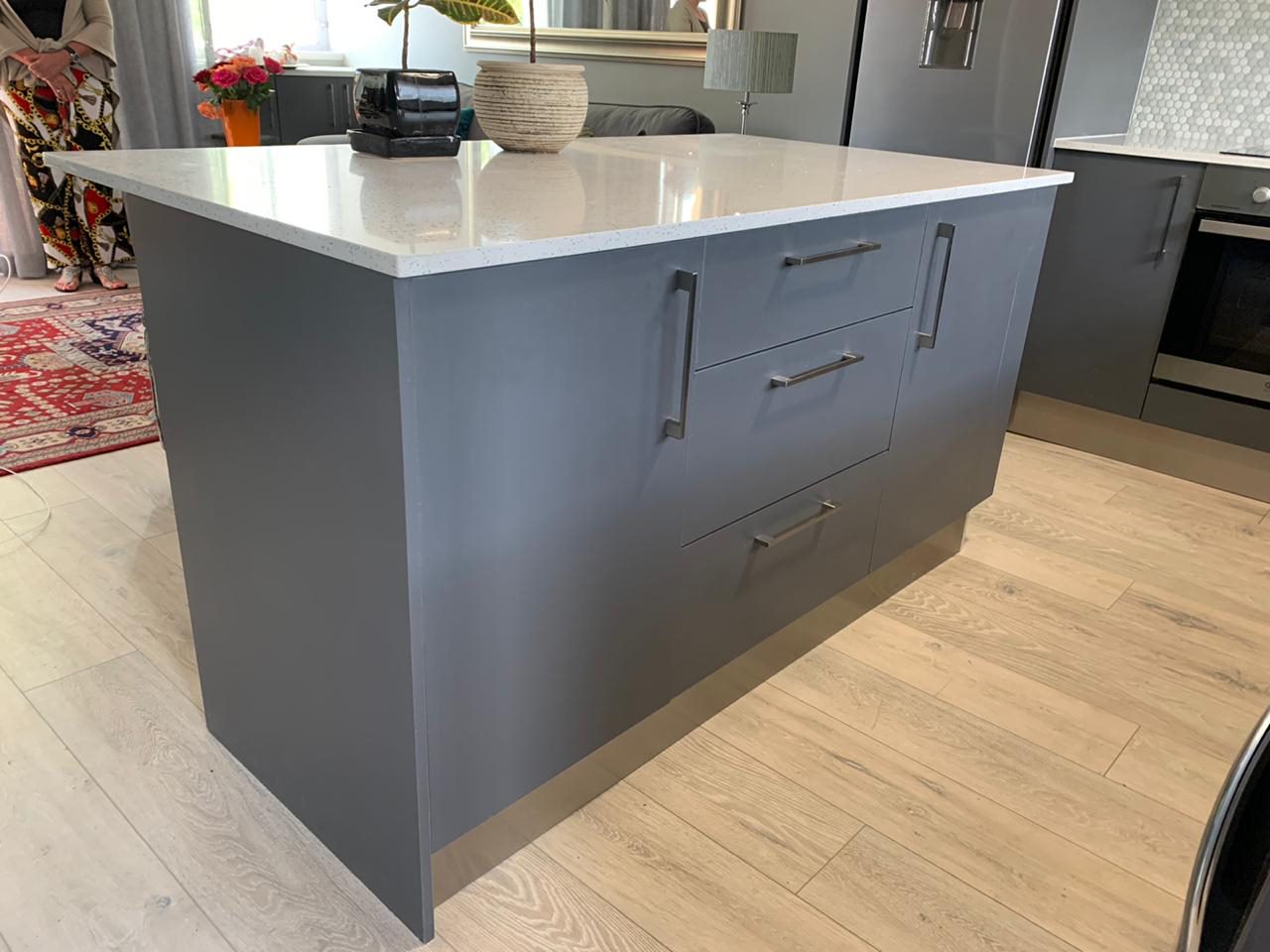 The renovation transformed the apartment into a sophisticated and inviting home. The bedroom now exudes luxury and comfort, anchored by the statement headboard and coordinated bed base, while the kitchen feels modern, practical, and visually cohesive — creating a seamless blend of style and functionality throughout the space.