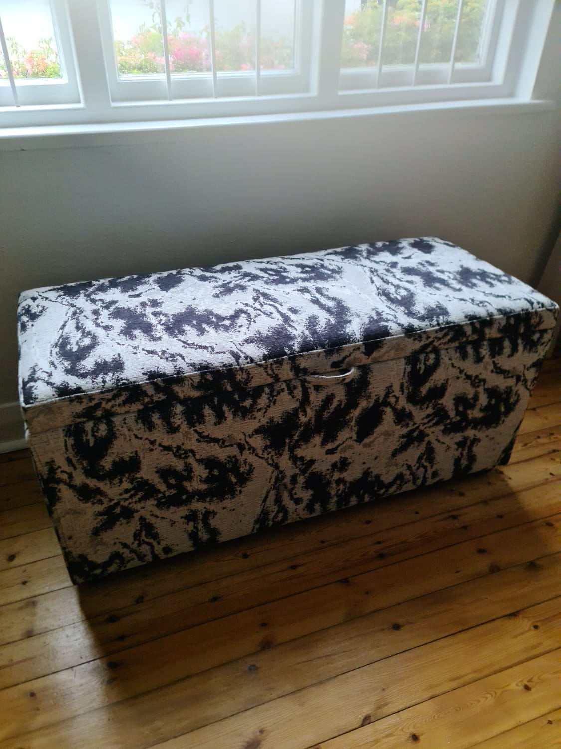 The client requested a revamp of the enclosed patio room to better integrate it with the rest of the home while enhancing comfort and visual interest. A key feature of the brief was the design and creation of custom accent ottomans to introduce both function and personality into the space.