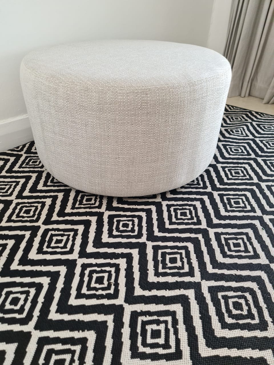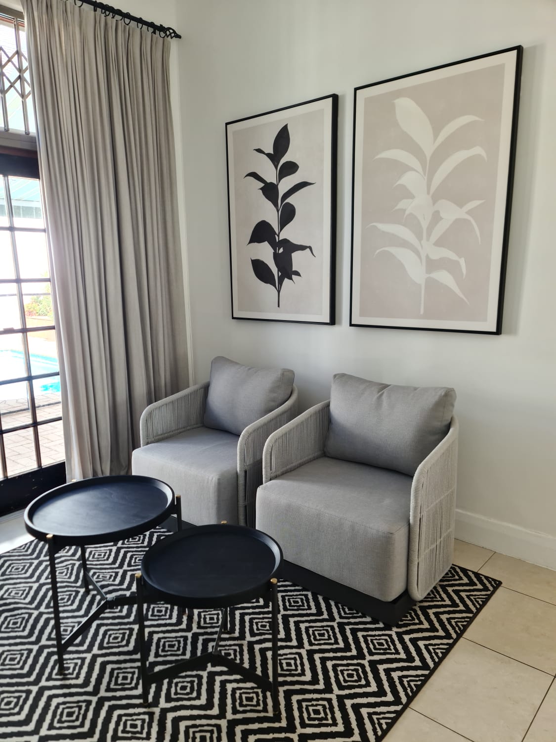 We reimagined the enclosed patio as a versatile extension of the home by refining the layout, introducing layered textures, and selecting a cohesive colour palette that complements the existing interiors. Custom-designed accent ottomans were crafted as statement pieces — upholstered in carefully selected fabrics to add depth, softness, and a contemporary edge. These pieces were positioned to serve multiple purposes, from additional seating to relaxed lounging and subtle focal points within the room.